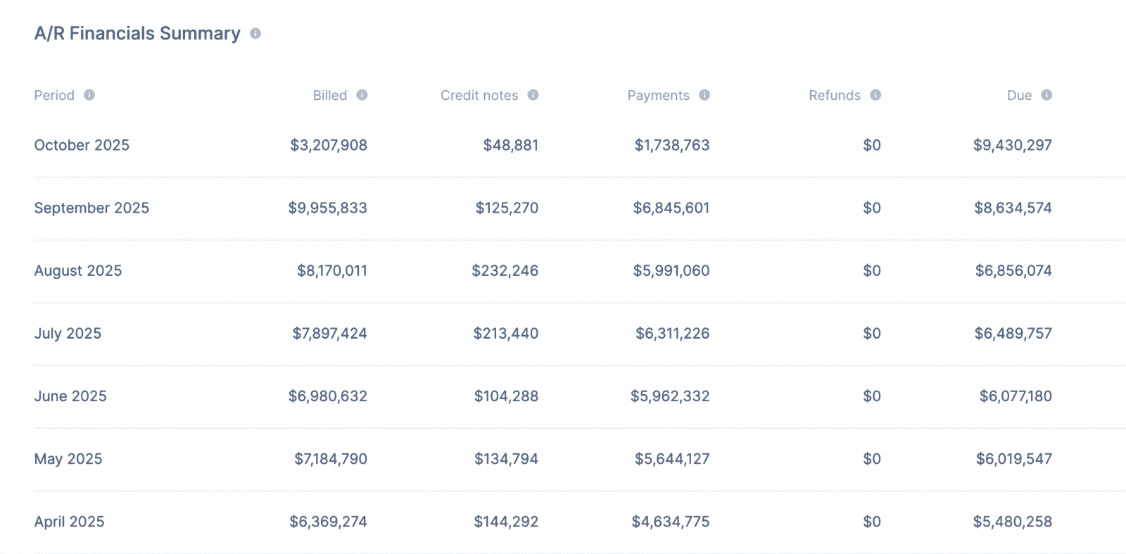 A/R Financials Summary: The big-picture snapshot of your receivables health.